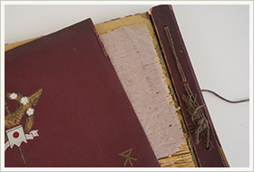 表紙 同質素材を用いた破損箇所の改修、同色染め上げ加工